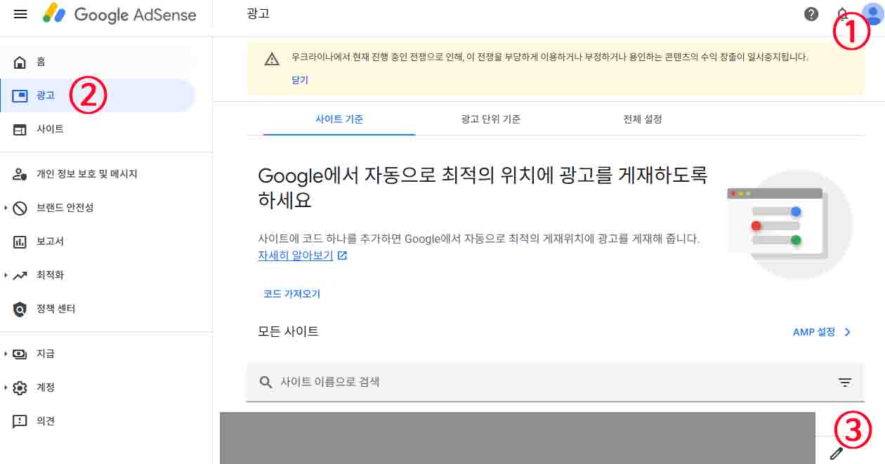- 애드센스 자동광고 설정에서 앵커/오퍼월 광고 off로 변경해야 함