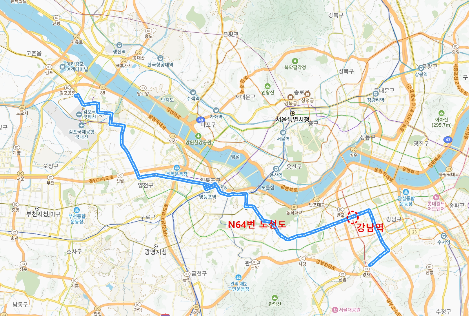 | N64 | 방화동↔염곡동 | 30~35분 | 23:40~03:15 |