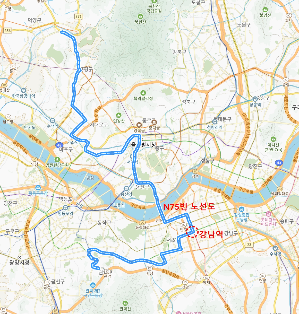 N75 진관동신림동 25~30분 23:30~03:50