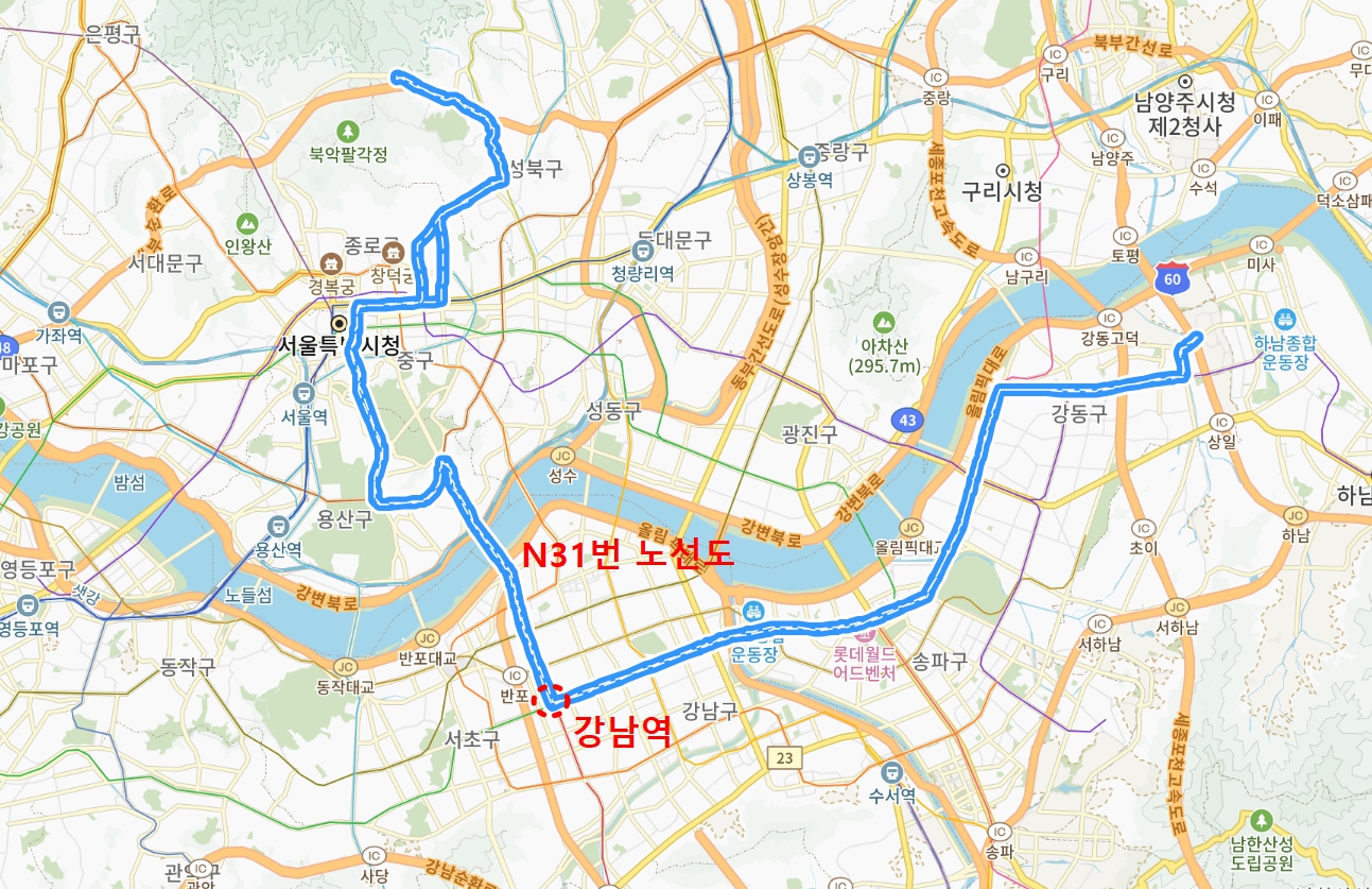 | N31 | 강일동↔정릉동 | 35~40분 | 23:30~03:50 |